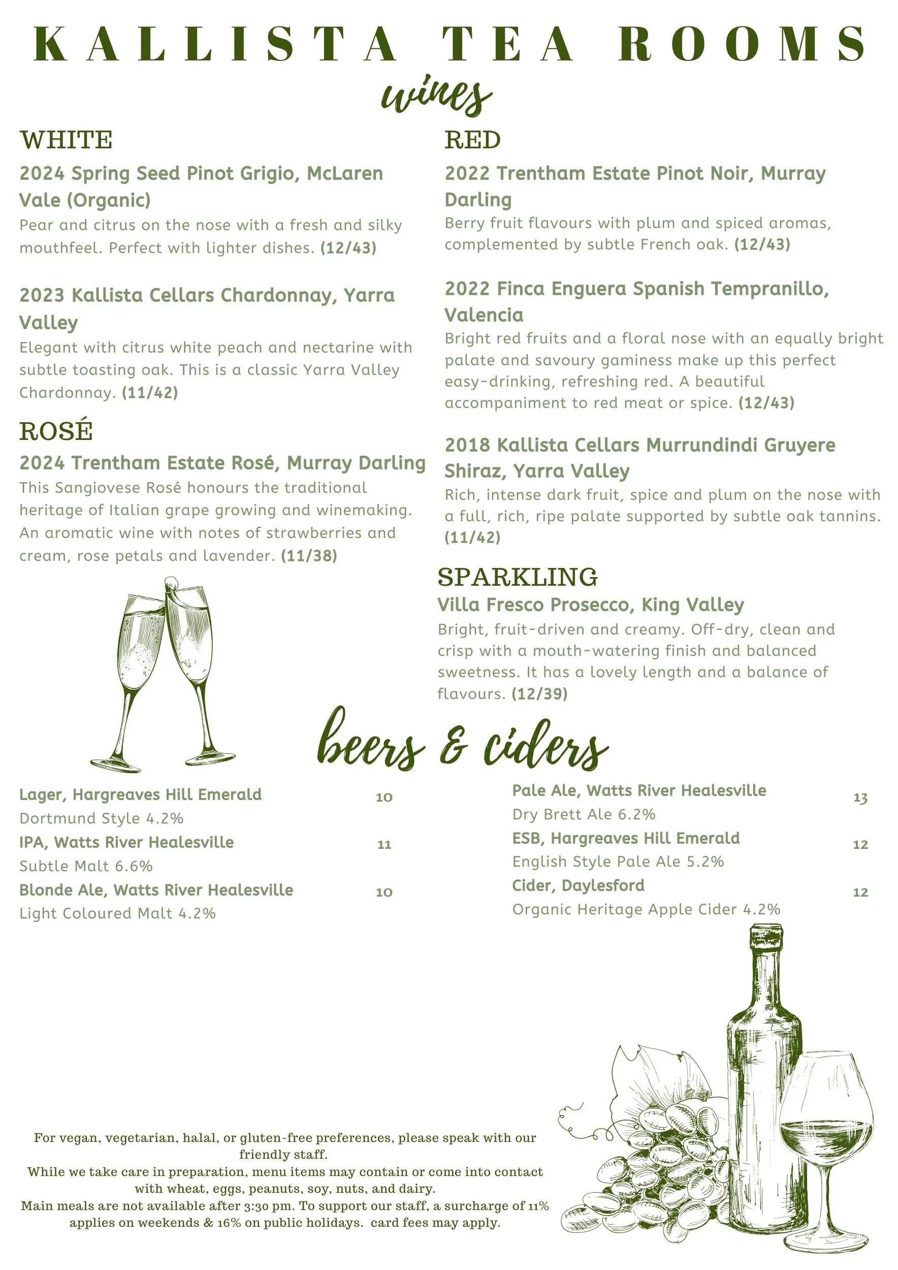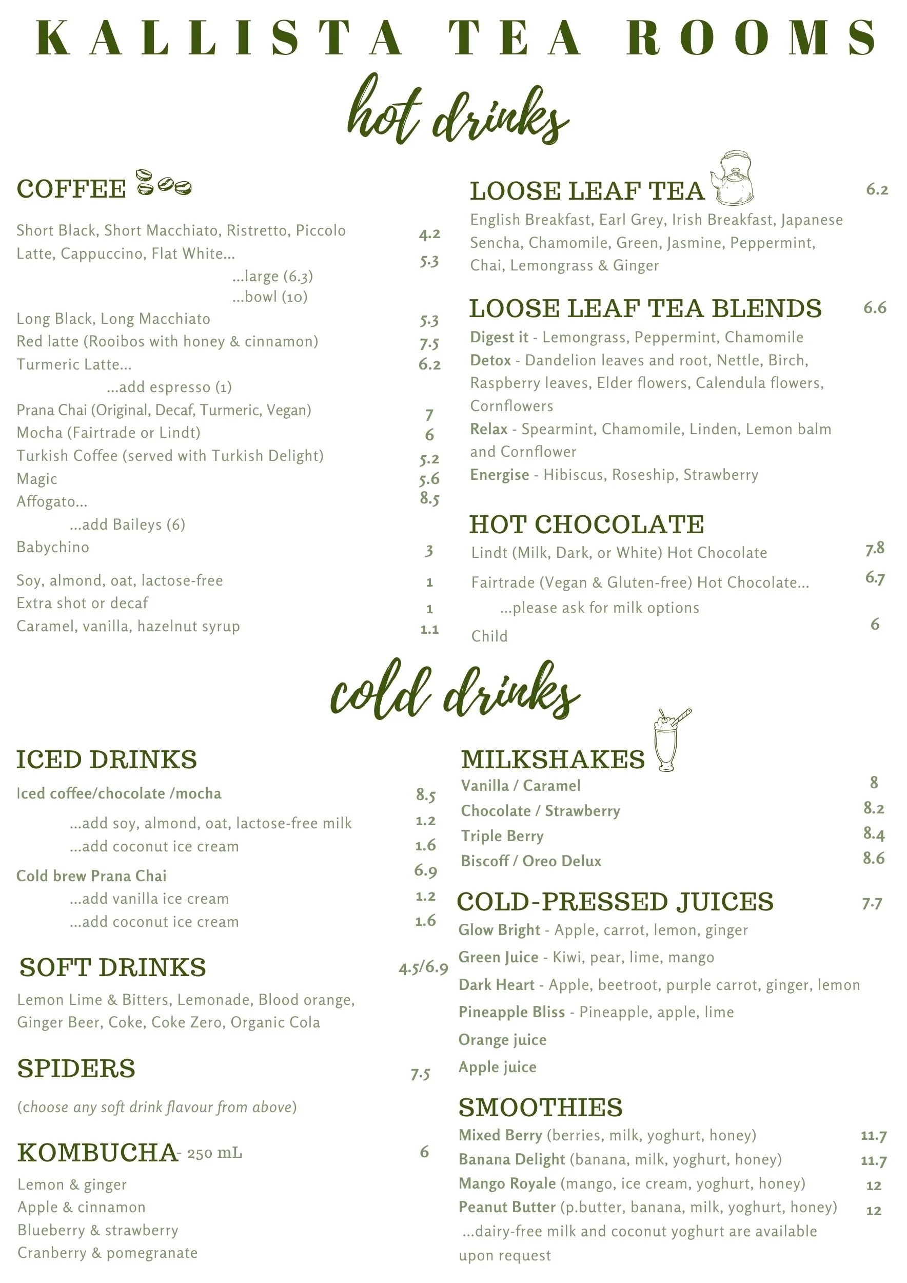 All-day menu items are typically available until 3.30pm. The kitchen may be closed earlier under exceptional circumstances. Cakes, scones & drinks are typically available until 5pm.