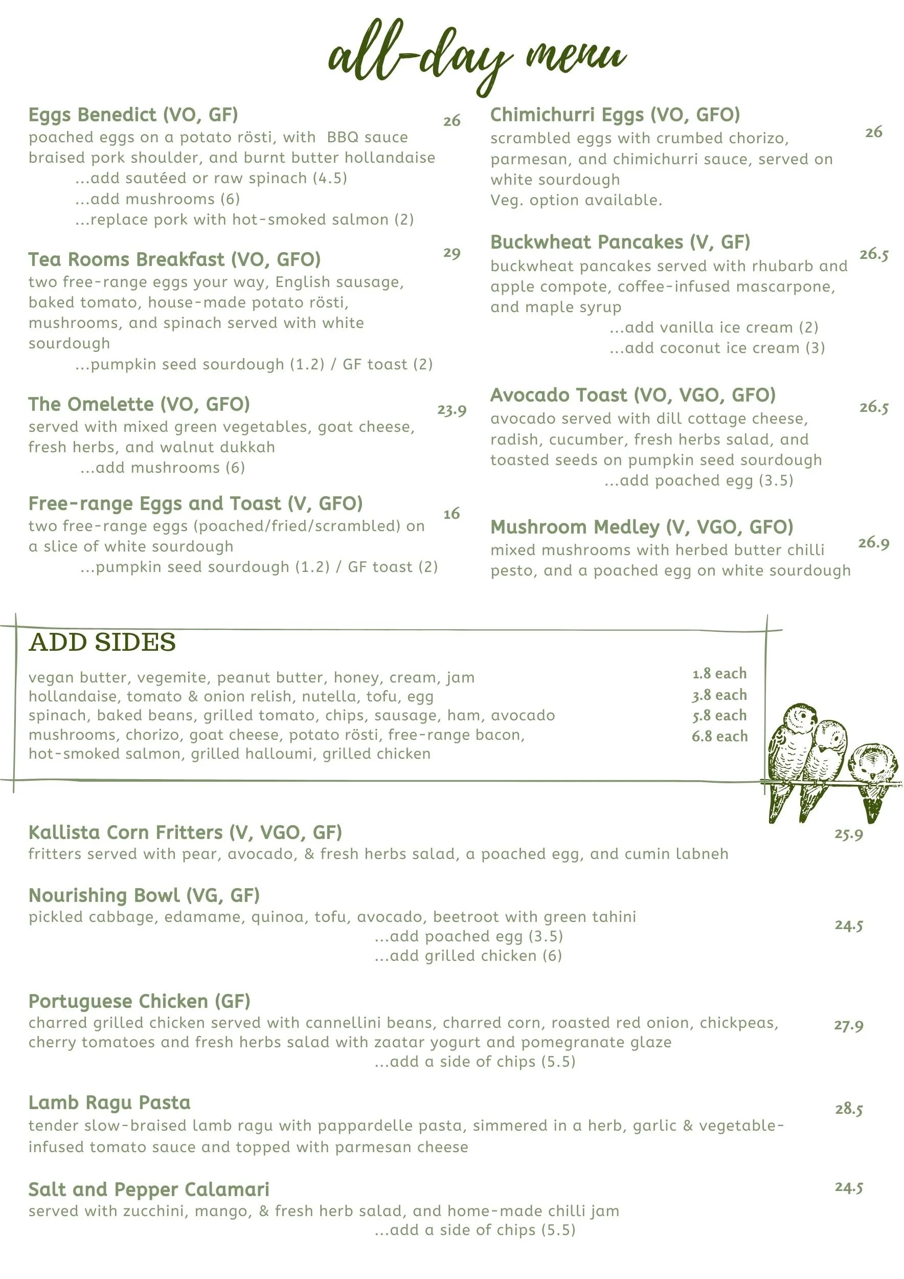 All items are available for dine in and takeaway.